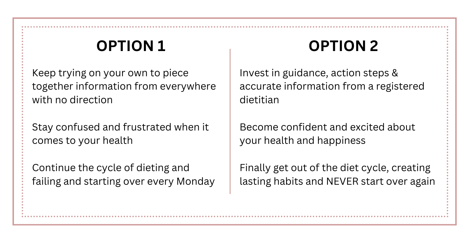 You've tried so many diets and can't seem to stick to them long term (or lose weight). You feel like you're constantly having to start over because it never lasts.